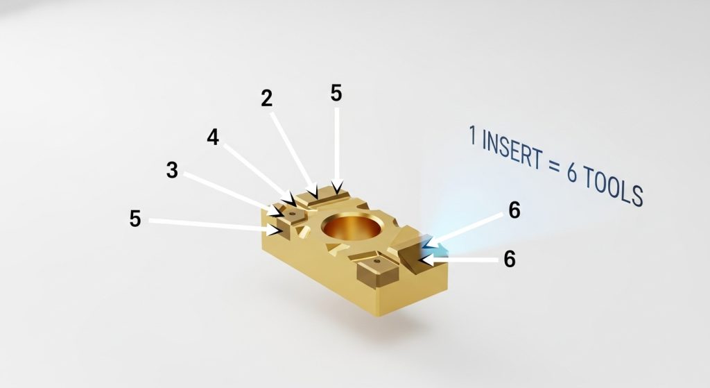 In high-volume turning, milling, or indexable drilling, this difference isn’t just pennies; it’s a massive margin recovery. By utilizing multi-sided inserts (like WNMG or CNMG shapes), you are effectively buying six or more tools for the price of one small carbide wafer.