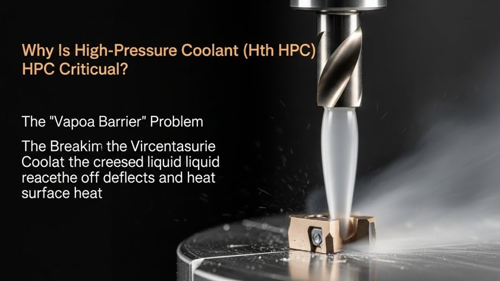 When a drill spins at 3,000 RPM, it creates an air barrier around the tip. Low-pressure flood coolant just rides over this barrier and never touches the cut. High pressure punches through this vapor barrier to cool the insert directly.