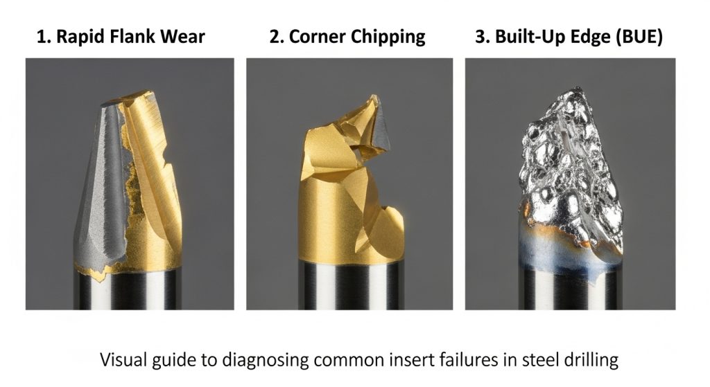 When an insert fails, it leaves clues. Don’t just toss it in the scrap bin—read the wear pattern to adjust your choice.