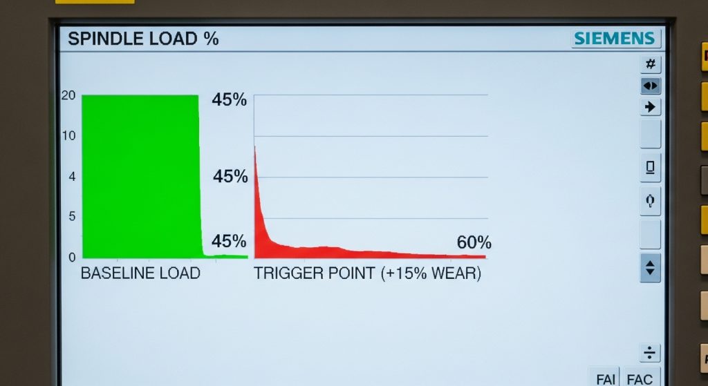 - Baseline: Note the spindle load percentage when the inserts are brand new (e.g., 45% load).