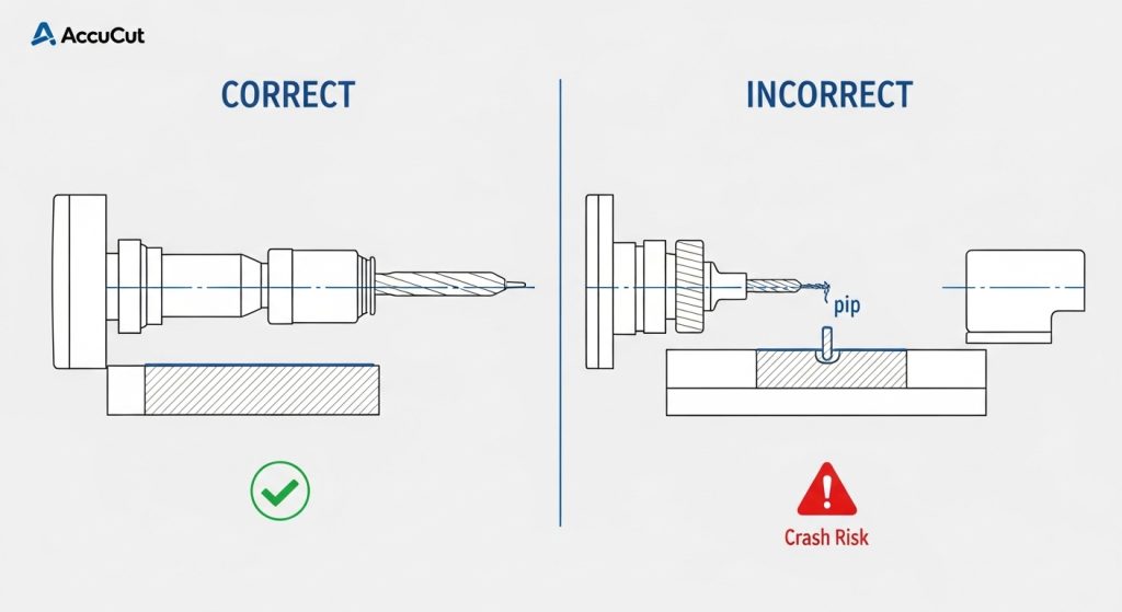 - The Risk: If the tool is below center, it will leave a “pip” or core in the middle of the hole. Eventually, this pip will grow large enough to hit the drill body, causing catastrophic failure. If it’s above center, the insert clearance angles are wrong, leading to rapid wear.