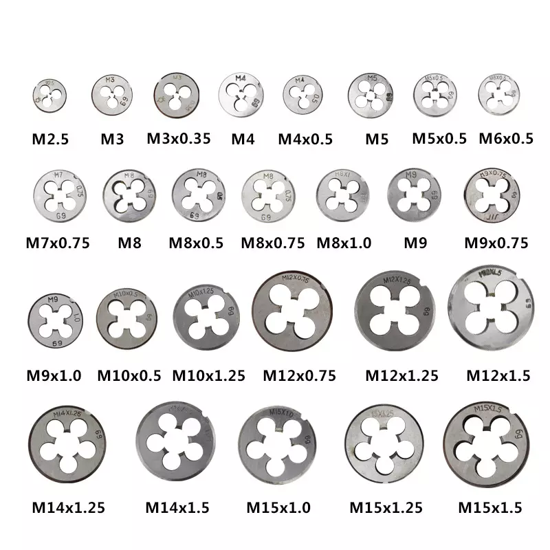 The Metric HSS Round Thread Dies are engineered for high-efficiency and precise threading of bolts, rods, and pipes across a wide range of materials. Crafted from high-speed steel (HSS), they offer exceptional hardness, sharpness, and wear resistance for extended tool life. Their optimized round die profile ensures smooth cutting and effective chip removal, resulting in clean, accurate threads. These dies perform reliably on carbon steel, stainless steel, and non-ferrous metals, maintaining consistent precision and durability in industrial, workshop, and maintenance environments.