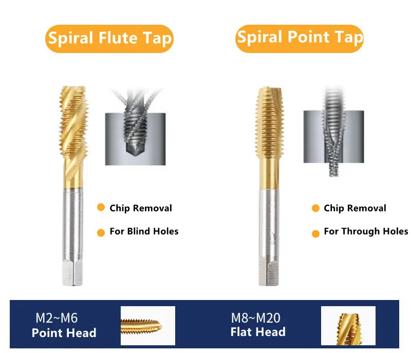 Thread Spiral Helical Flute Machine Taps design has a good upward chip removal that does not lead to clogging of the flute and has smooth and precise threads. These taps are of the best HSS or carbide, and even when subjected to much stress, they are sharp and cutting. They fit both CNC and conventional machines appropriately and can work equally with most metals, including stainless steel, aluminum, and cast iron.